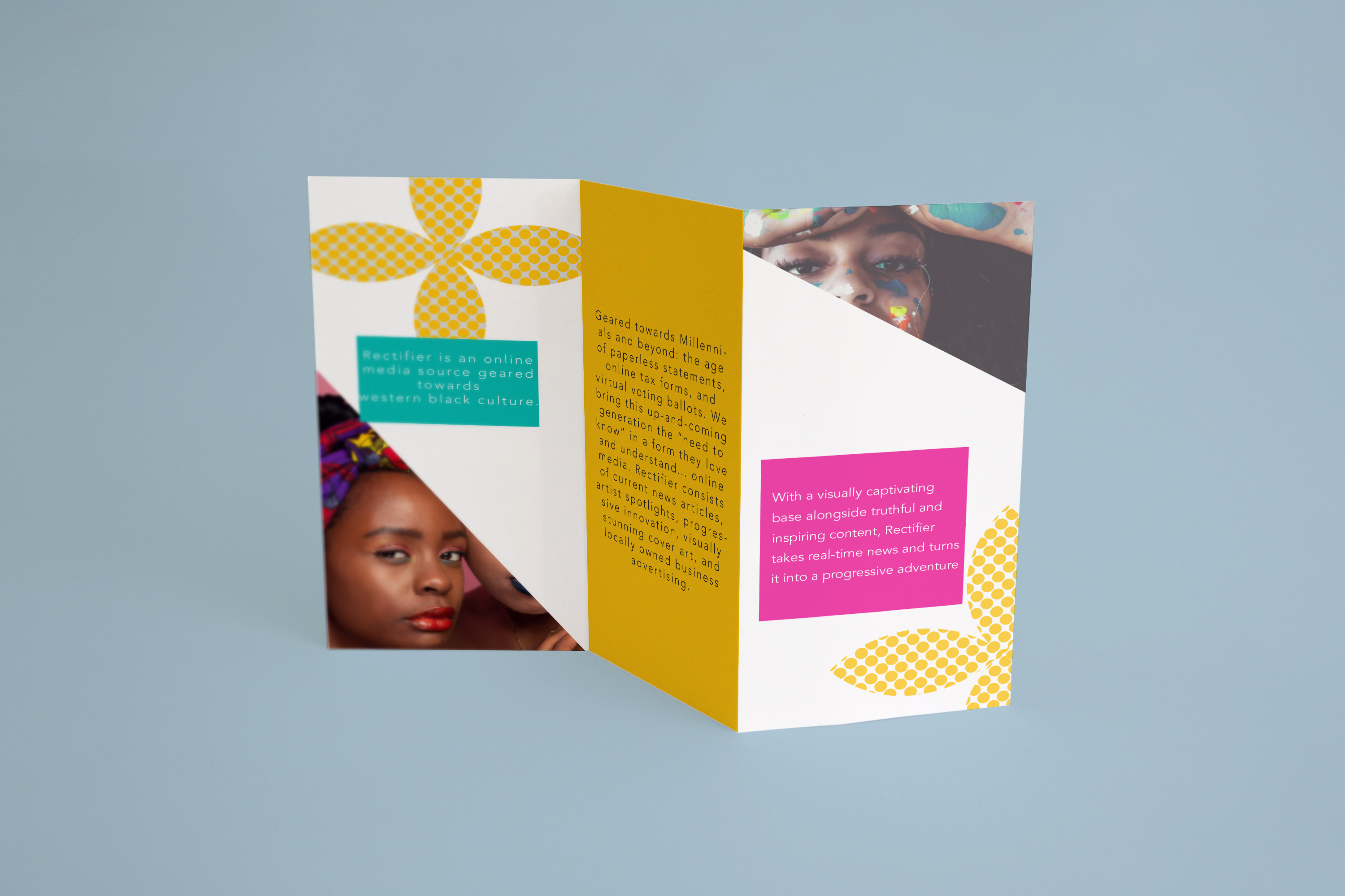 This concept was for a start up cultural magazine geared towards minorities. The pattern and color heavy designs are based of of designs from cultures in Africa and the middle east. The goal for this project was to make youthful deigns that maintained the standard of mainstream magazines.